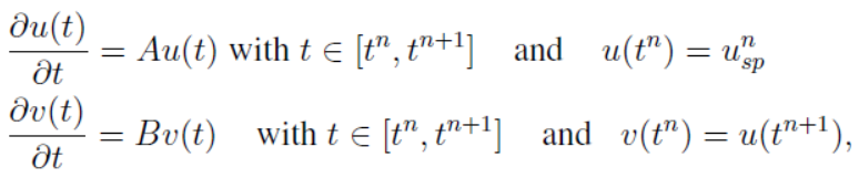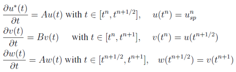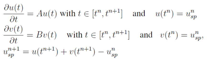 Complex physical processes are frequently modelled by the systems of linear or non-linear partial differential equations. Due to the complexity of these equations, typically there is no numerical method which can provide a numerical solution that is accurate enough while taking reasonable integrational time. In order to simplify the task, operator splitting procedure has been introduced, which is widely used for solving advection-diffusion-reaction problems and Navier-Stokes equation including modelling turbulence and interfaces.