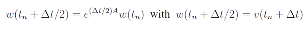 One of the most popular and widely used operator splitting method is Strang splitting. By small modification it is possible to make the splitting algorithm second order accurate. The idea is that instead of first solving the first sub-problem for a full-time step, we solve it for a half time step. We then solve the second sub-problem for a full-time step, and then back to the first sub-problem and solve it for a half time step.