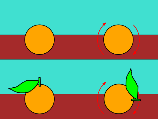 I know, it's a bit hard to visualize. Let's take the same orange we used before. It's smooth and spherical, thus, as we said it's quite symmetrical under rotations. But if I take this other orange, with the small stalk still attached, and I rotate it, you can distinguish the object before and after my modification. If the orange has the stalk is not invariant under rotation. If the neutron has a dipole moment is not invariant under T ( and thus under CP ).