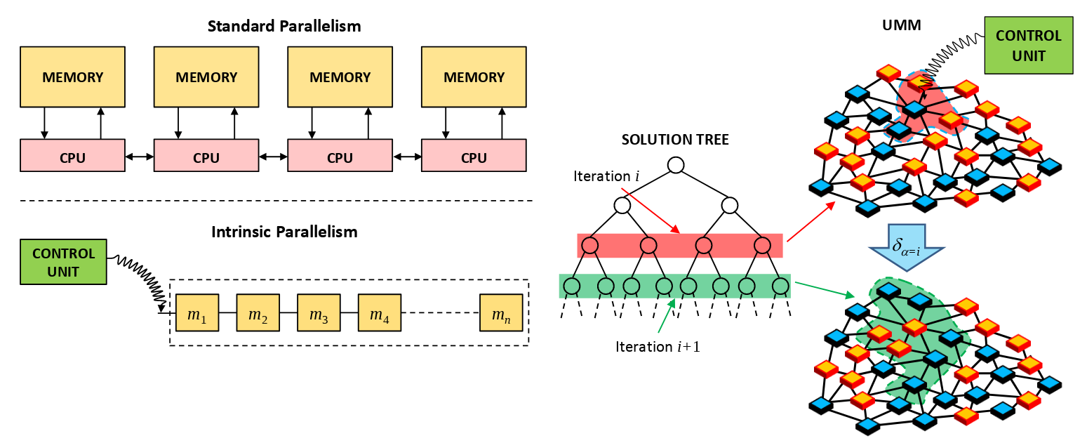 One of them is intrinsic parallelism. They claim: "the Universal Memcomputing Machine approach to parallel computing can account for a number of processing units working in parallel that can grow also exponentially, if required". That doesn't sound very clear.
